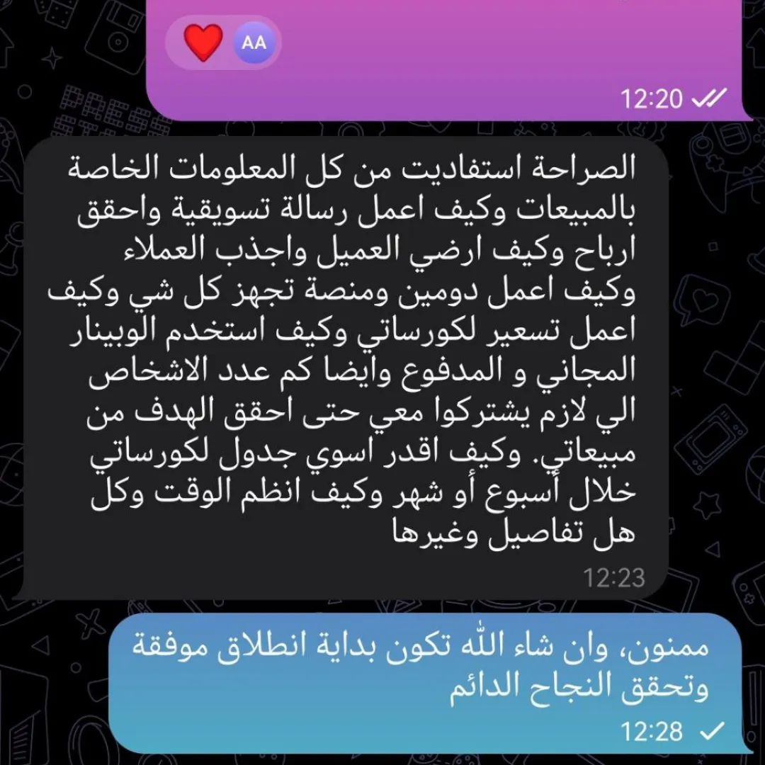 مجموعة تليجرام خاصة للمشتركين للنقاش والدعم (السعر الأصلي= 99 دولار)